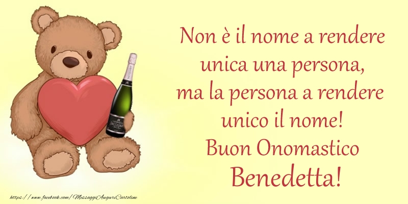 Di seguito riportiamo alcune gif e immagini di auguri di buon onomastico da inviare oggi 11 luglio su WhatsApp a tutti coloro che sono stati battezzati con il nome di Benedetto e Benedetta.