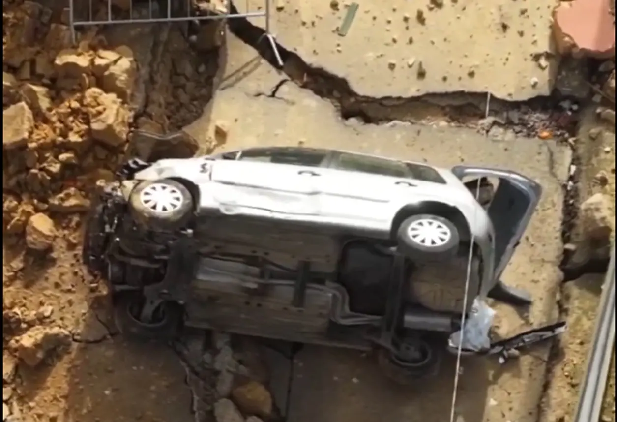 Secondo quanto emerge dalle riprese aeree, la vettura è scivolata lungo la scarpata e si è schiantata nel burrone sottostante. Il veicolo era stato fotografato e ripreso più volte mentre si trovava sospeso sul bordo della frana, attirando l’attenzione di media e opinione pubblica.