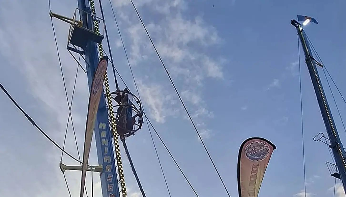 L’incidente è avvenuto nella zona della Fiera conosciuta come “Calle del Infierno”, all’interno dell’attrazione “Steel Max”, una sorta di fionda meccanica.