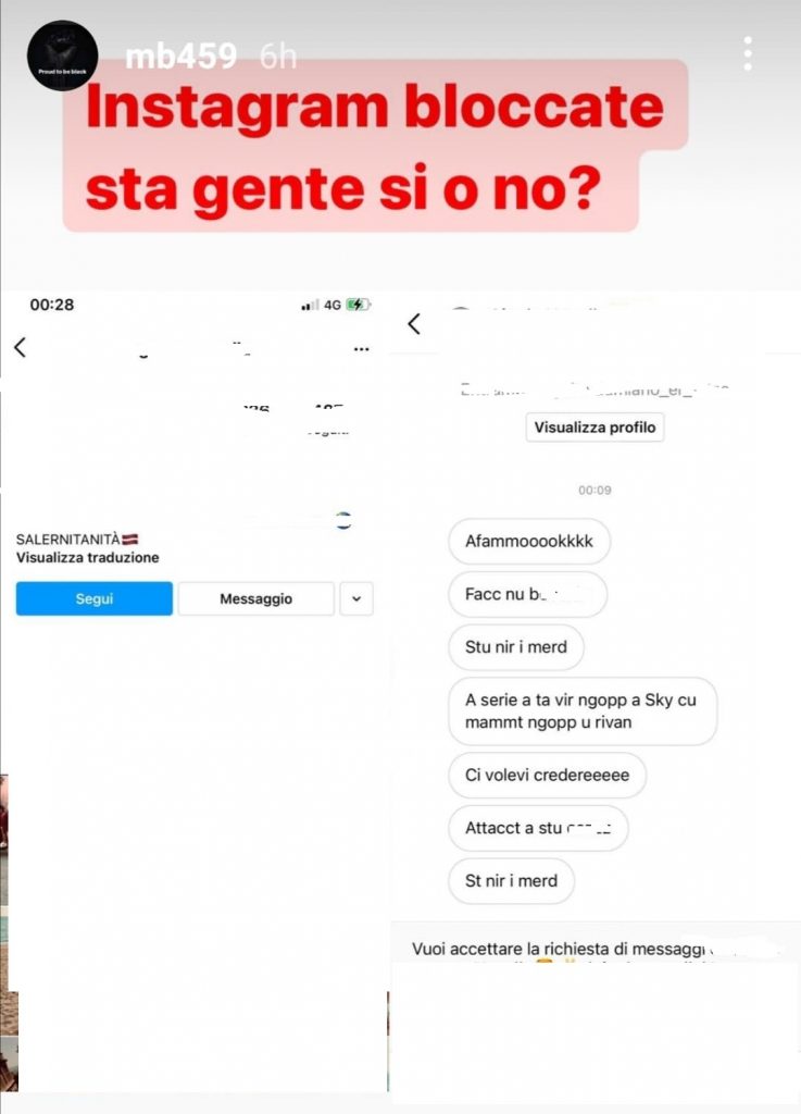 Nel messaggio anche un’espressione razzista che ha provocato la reazione stizzita del calciatore: “Instagram, bloccate sta gente. Sì o no? Fate voi grazie” – ha scritto Balotelli a corredo dello screenshot pubblicato su Instagram Stories.