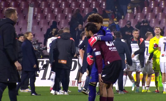 La Salernitana ha continuato a pressare mentre i rossoblu hanno trovato nell’estro di Gudmundsson l’immediata risposta per riequilibrare il risultato. L’islandese ha messo in moto Retegui che con un bel diagonale trafigge Ochoa. Nell’occasione l’attaccante italo argentino è stato colpito da uno snack piovuto dagli spalti (poi mangiato da Strootman). I granata si sono immediatamente riorganizzati ed al 32′ sono andati vicino al gol con un bel pallone di Candreva per Simy che è stato anticipato di un soffio dall’estremo difensore ospite. Il Genoa non è rimasto a guardare e si è reso pericoloso con Retegui che ha trovato Ochoa attento sul suo colpo di testa. Nel finale granata pericolosi con Lovato che ha trovato la respinta di Martinez.