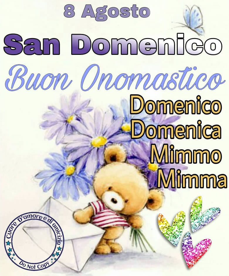 Di seguito alcune immagini per gli auguri di buon onomastico Domenico, auguri Domenica da inoltrare via WhatsApp, via social (da condividere su Facebook, Messenger ed Instagram) o sms.